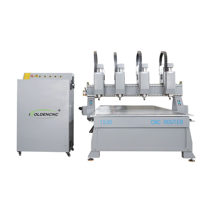 四头木工雕刻机,顾名思义,就是四个头的木工雕刻机,即四个机头可同时加工,也可单独使用,比单机头提高四倍的效率。独立四机头木工数控雕刻机对比普通木工雕刻机而言多了三个独立的加工主轴,可以同时在一张板材上加工,又不同于一拖多个主轴雕刻机仅限于适用于小工艺的批量生产,独立四机头木工数控雕刻机还适用于门板、棺木等工艺的雕刻加工。广泛用于实木及复合门、橱柜门、大面积板材平面雕刻、实木雕花镂铣、板式家具雕刻、仿古红木家具雕刻、实木艺术壁画雕刻等行业。